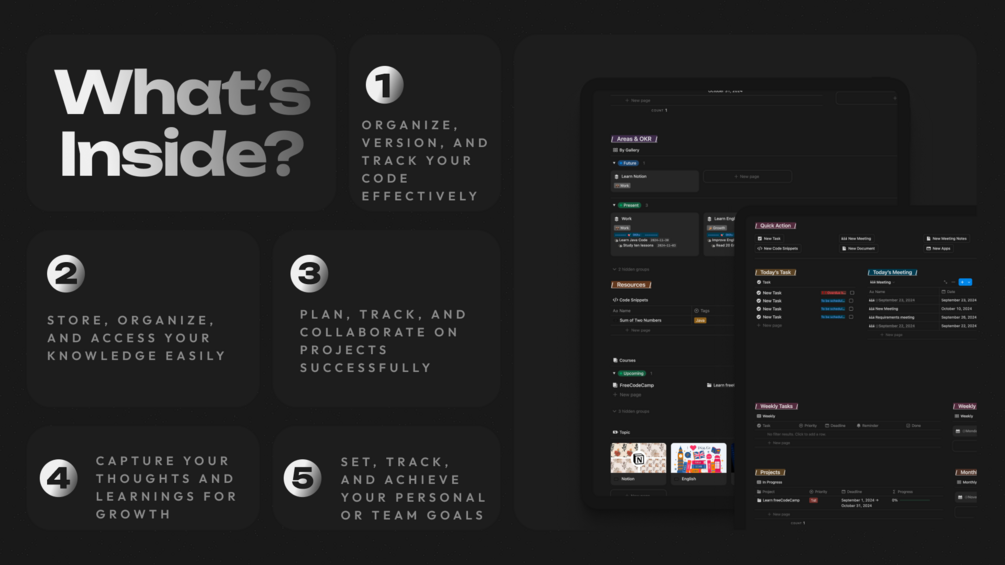 ✓ Keep track of coding tasks, projects, long-term goals, and everything in between.