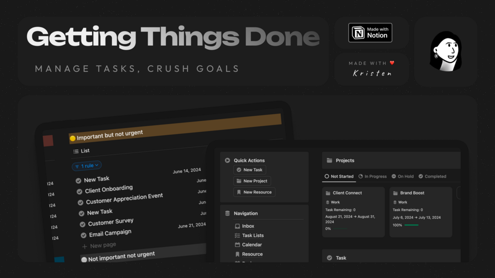 Notion is a free-to-use single digital space where you can think, write, and plan. Capture thoughts, manage projects, or even run an entire company — and do it exactly the way you want. GTD OS is built inside Notion and is easy to use and set up even with no prior knowledge. -
