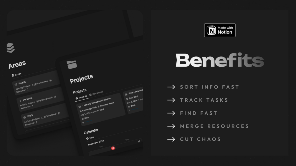 Notion is a free-to-use single digital space where you can think, write, and plan. Capture thoughts, manage projects, or even run an entire company — and do it exactly the way you want. PARA OS is built inside Notion and is easy to use and set up even with no prior knowledge. -