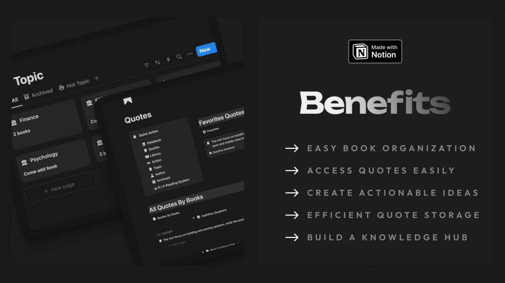 - Topic: Organize books and notes by specific themes or subjects, making it easier to dive deeper into related content and connections.